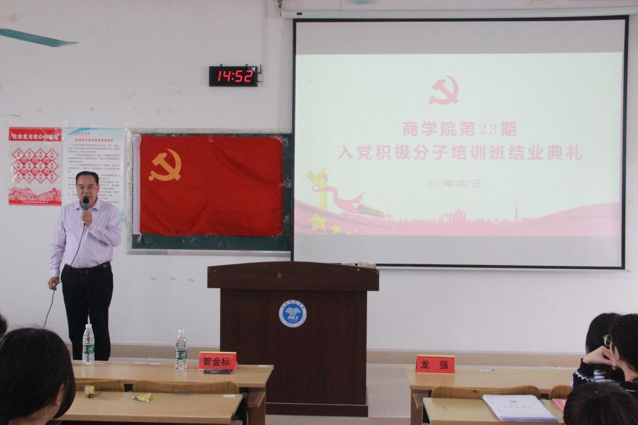 3月21日,我院于东校区博学楼1-203教室举行分党校第二十三期入党积极分子培训班结业典礼。我院党委书记管金标,党委专职组织员谭荔,团委书记兼培训班班主作李晓丽出席结业典礼,全体学员参加结业典礼,本次典礼由李晓丽主持。