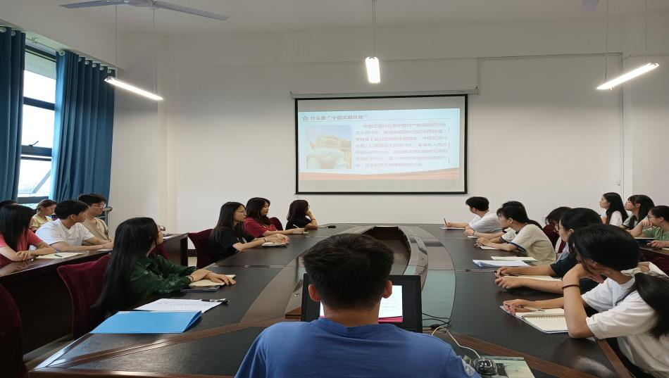 领学人彭乔枫分别从“什么是中国式现代化”“为什么要推进中国式现代化”“如何推进中国式现代化”“推进中国式现代化的意义”四个方面带领同学们深入学习。他表示:拓展中国式现代化必须解放思想、深化改革、锐意创新,坚决破除一切制约中国式现代化顺利推进的体制机制障碍,全方位为中国式现代化源源不断注入新的动力。