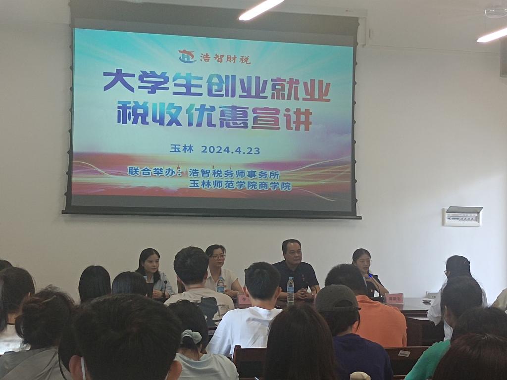 本次活动由浩智税务师事务所杨春草同志主持,在必赢3003no1线路检测中心党委书记管金标致辞中拉开序幕,随后杨春草详细介绍创业、就业阶段的税收优惠政策,分析税收优惠具体内容,并提出相应建议,助力大学生更好地运用税收优惠政策实现创业梦想、解决就业难题。最后,进行交流互动,同学们受益匪浅。