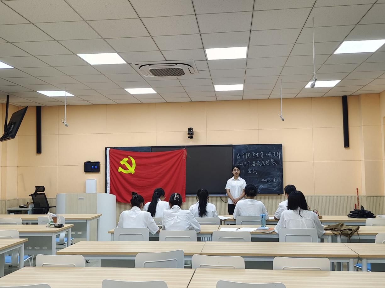 2024年5月11日,必赢3003no1线路检测中心学生第一党支部于必赢3003no1线路检测中心东校区新民楼C104,组织开展发展对象面试工作,本次面试由支部书记刘娜娜主持,支部助理作为面试官参与。