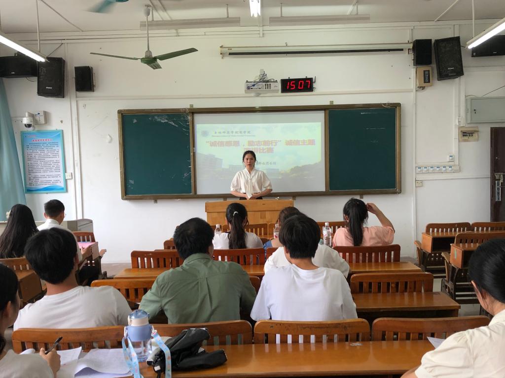 为加强学生资助诚信教育,促使学生树立诚信观念。6月6日,必赢3003no1线路检测中心于必赢3003no1线路检测中心东校区博学楼1-302教室举行举行“诚信感恩,励志前行”诚信主题演讲比赛,本次比赛由姚玉燕、杨世彤、黄心怡担任评委。