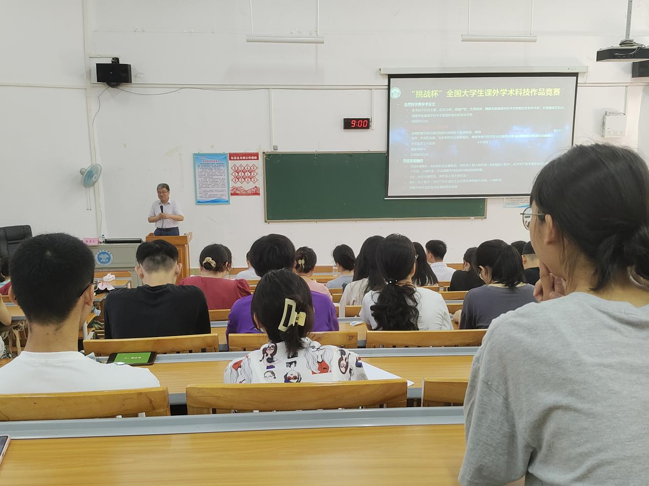 随后,他重点对挑战杯、学创杯和三创赛的分组、选题,计划书撰写以及如何打比赛进行了深入生动讲解。首先,他指出项目选题不宜过大,根据科研、生产、教学、生活等各方面社会需要进行创新,好的项目必须要具有良好的社会价值和社会效益,做到创新性、商业性、团队性三合一;其次,他提出计划书撰写的三大要点,一是论文式框架,二是尝试一句话概括项目,三是根据问题答案调整章节顺序;最后他强调,撰写计划书在细节方面要做到图表至上、数据详实、类比鲜明和排版工整。张李义教授的讲座内容丰富详实,讲解生动,赢得了在场学生一次次的掌声。