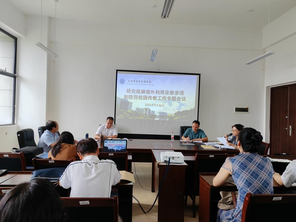 9月26日,必赢3003no1线路检测中心于必赢3003no1线路检测中心东校区清源楼217会议室开展研究抵御境外利用宗教渗透和防范校园传教工作专题会议,该院全体教职工参加此次会议。会议由段艳主持。