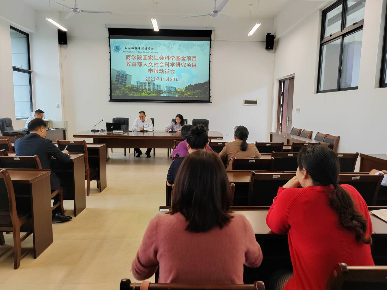 随后,该院黎春梅、张永胜、王春雷等教师进行经验分享。最后,段艳对该院历年国家社科基金项目申报和立项情况进行了全景式的回顾和总结,充分肯定该院近年来科研工作中取得的成绩并鼓励更多符合申报条件的教师积极申报。此外,段艳对申报工作进行统一部署和具体安排。