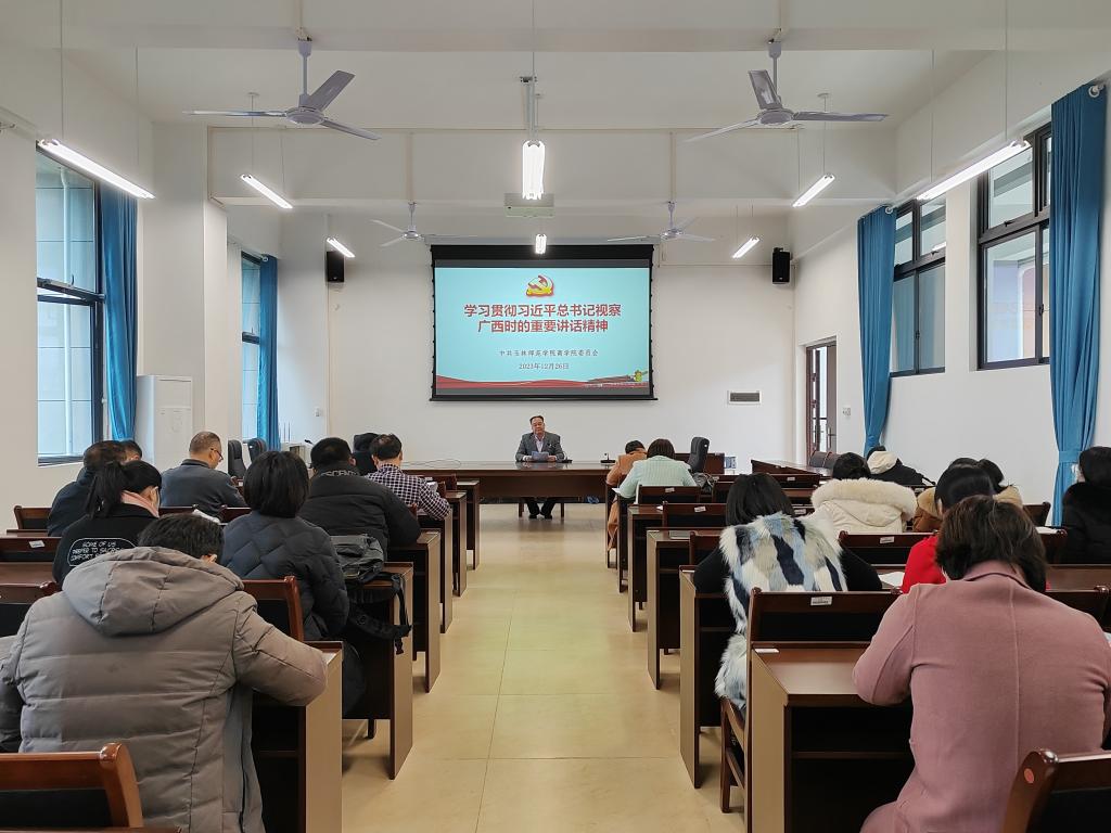 12月26日,必赢3003no1线路检测中心于必赢3003no1线路检测中心东校区清源楼A-217会议室召开政治理论学习会,专题学习贯彻习近平总书记视察广西时的重要讲话精神。该院党委书记管金标、院长段艳以及全体教职工参加此次会议。会议由管金标主持。