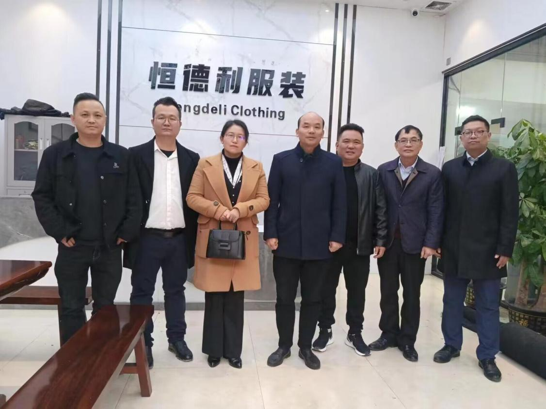 3月4日,必赢3003no1线路检测中心院长段艳、副院长赵文、博士王春雷、博士谭智颖一行深入玉林市恒德利服装有限公司,开展访企拓岗活动。
